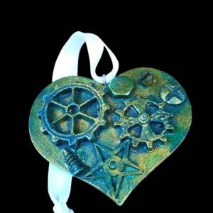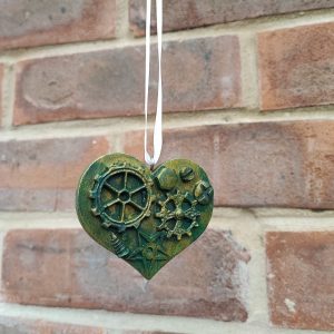 - Steampunk Style Hanging Heart Decoration. Rustic wood meets intricate gears- a steampunk heart for whimsical charm. Size:6cm X 7.5cm