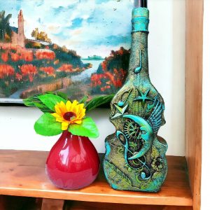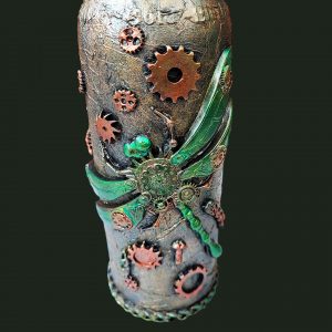 - Dragonfly Steampunk Style Vintage Colours Hand Decorated Glass Bottle Size: 29cm x7cm