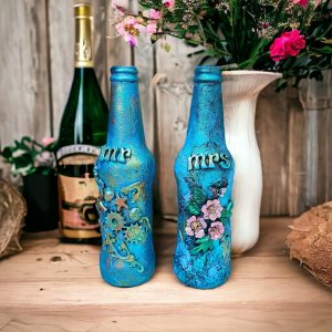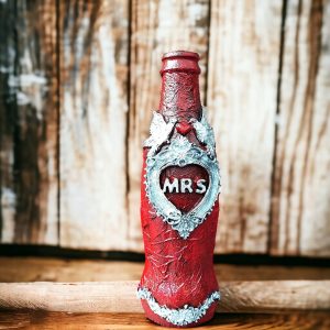 • Wedding gift box, unique pair of Mr. & Mrs hand-decorated bottles. Bottle: 21cm x5.5cm Box: 24cm x15cm x8cm