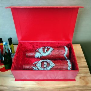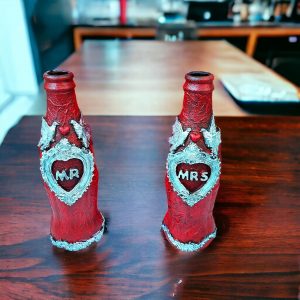 • Wedding Gift Box of Mr.& Mrs bottles, hand-painted and decorated. Size: Bottle: 21cm x5.5cm Box: 24cm x15cm x8cm