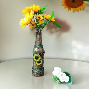 • Discover our beautiful Sunflower Decorated Bottle, hand-decorated with clay sunflower and bird embellishments. Perfect for a unique home decor or as a thoughtful gift. Shop now at gabicraft.co.uk ! Size 20cmX5cm.