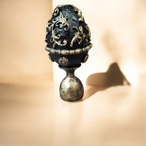 • Beautiful and unique Easter decoration. The perfect blend of fun and glamour, if you are looking for eye-catching decoration then look no further! Display on a window sill, table, kitchen to add a touch of style and fun to your home. The egg is hand decorated with air dry clay embellishments. Painted with mettalic siver paint and varnished for protection.