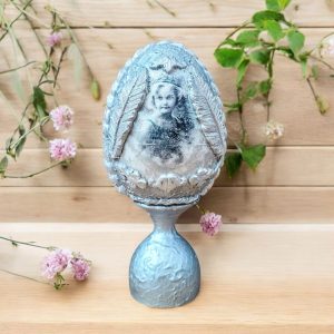 • Silver Memory Keepsake Egg with Vintage Photo Design, Handcrafted with Love
