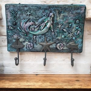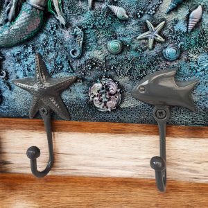 • Tea Towels Holder, Mermaid Wall Art, Sea Life Hook, Key Holder 30cm x20cmx 8mm