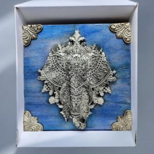 • Silver Elephant Wall Decoration , Beautiful 15×15 cm Resin Wall Art