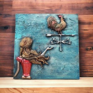 • Rooster Wall Decoration, Farm Life, Rustic Morning Melody Size 15x15cm,