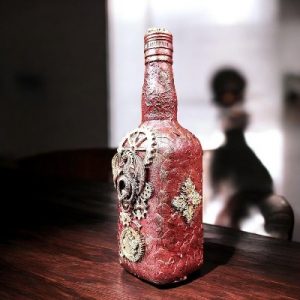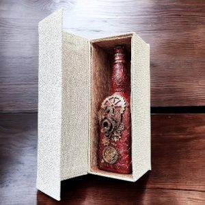 - Steampunk-Style Glass Bottle Gold Dragon 700ml. Men's Gift Box Size: Bottle: 27cm x8.5cmx5.5cm Box: 28cm x11 cm x9.5cm