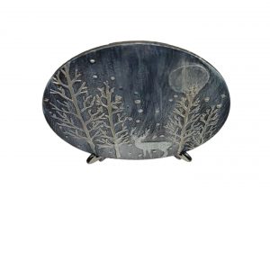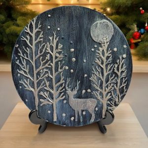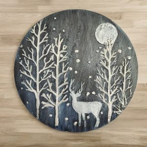 Enchanted Silver Stag in the Winter Moonlight, 15 cm Wood Slice Art, Unique Gift