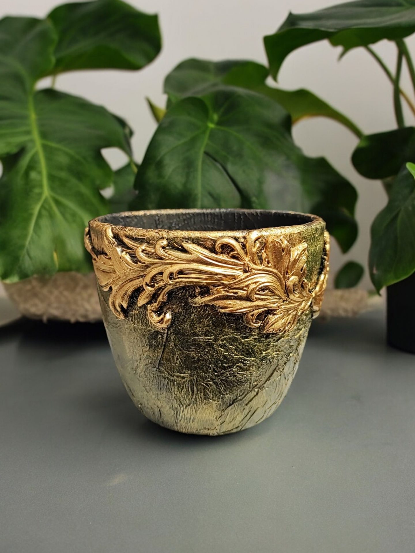 Beautiful Gold Flower Pot, Unique Handmade Gift