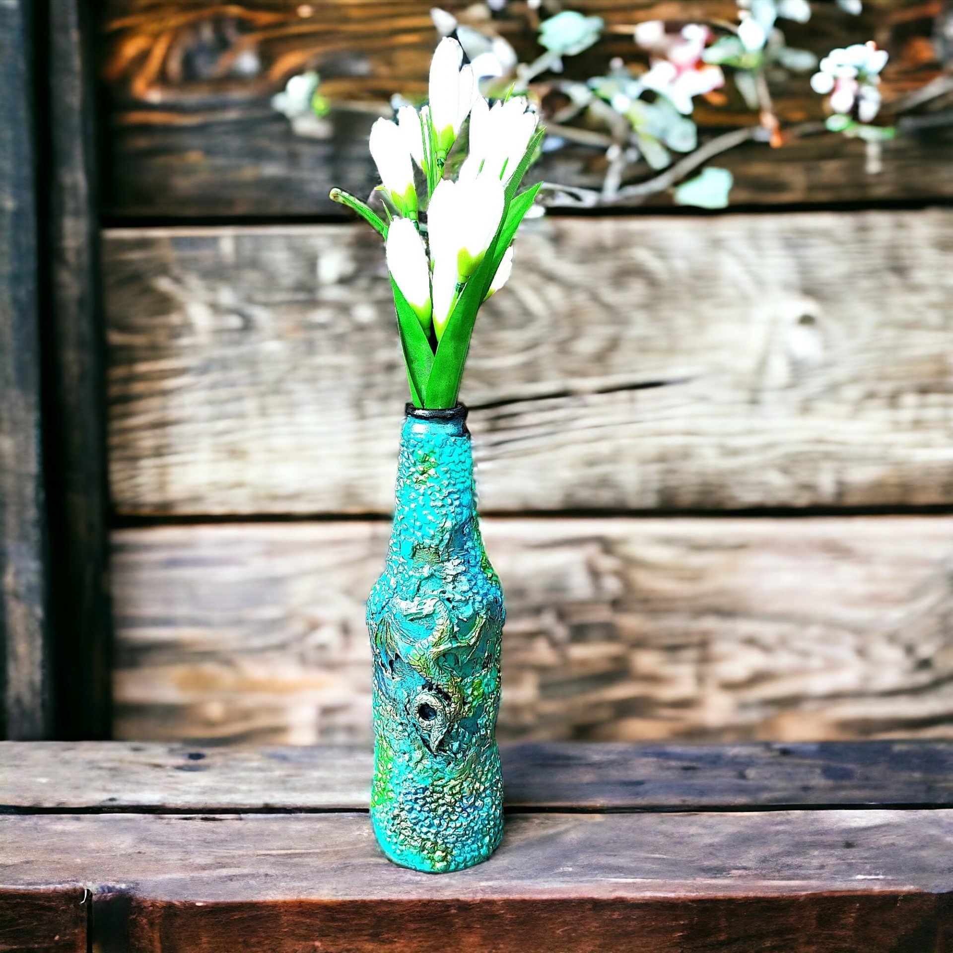 This small dragon bottle can be used as a candle holder or a vase. It is recommended not to get wet because the paint could be damaged.