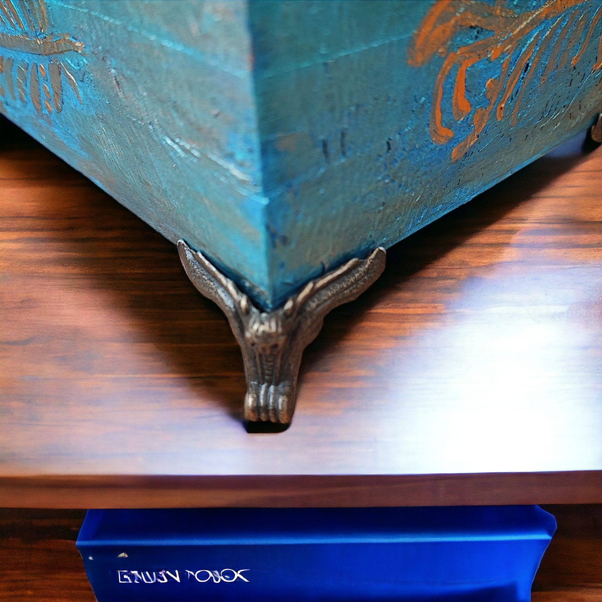 Eagle box, Mystical Eagle Keepsakes, Hand-decorated Blue Wooden Box, Celestial Wooden Box.