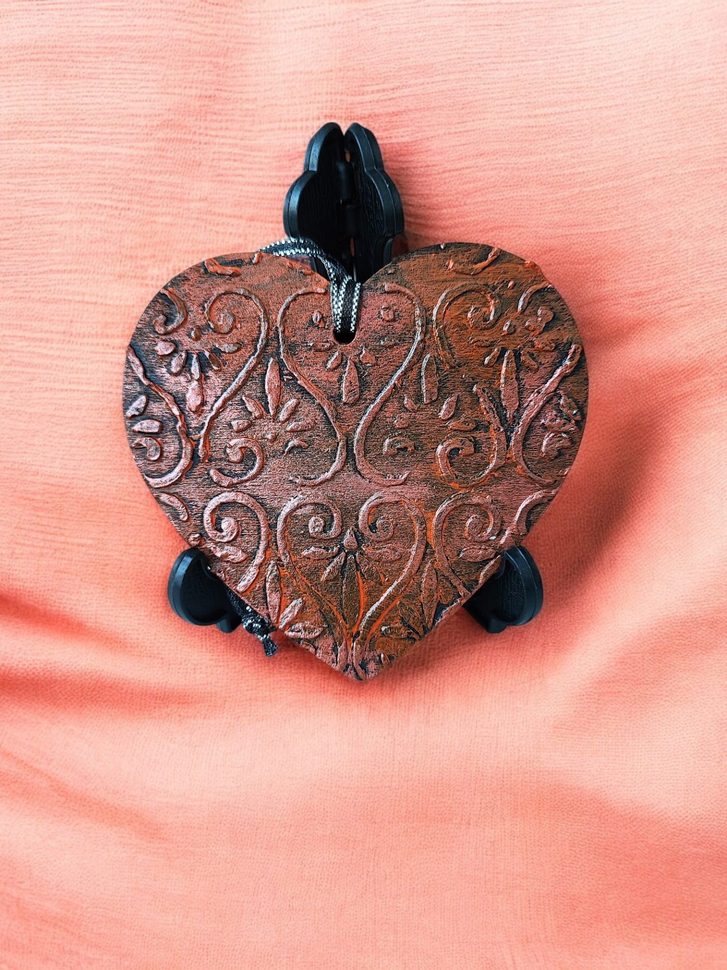 Hand-painted with acrylic and metallic paint, decorated with epoxy resin and air-dry clay embellishments.