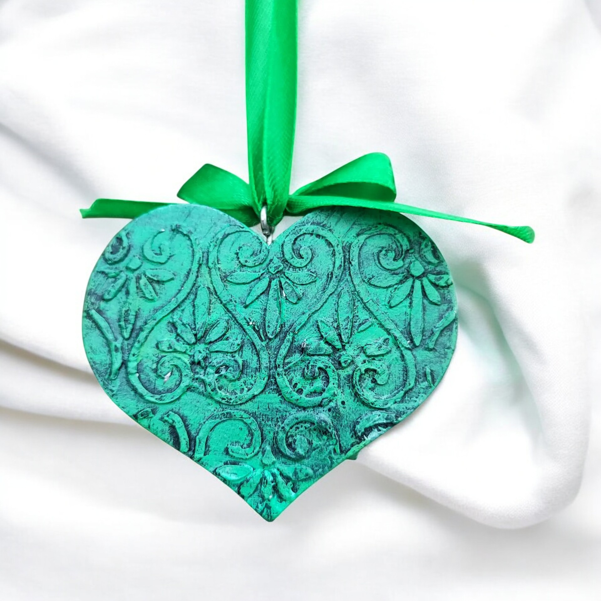Hand-painted with acrylic and metallic paint, decorated with epoxy resin and air-dry clay embellishments.
