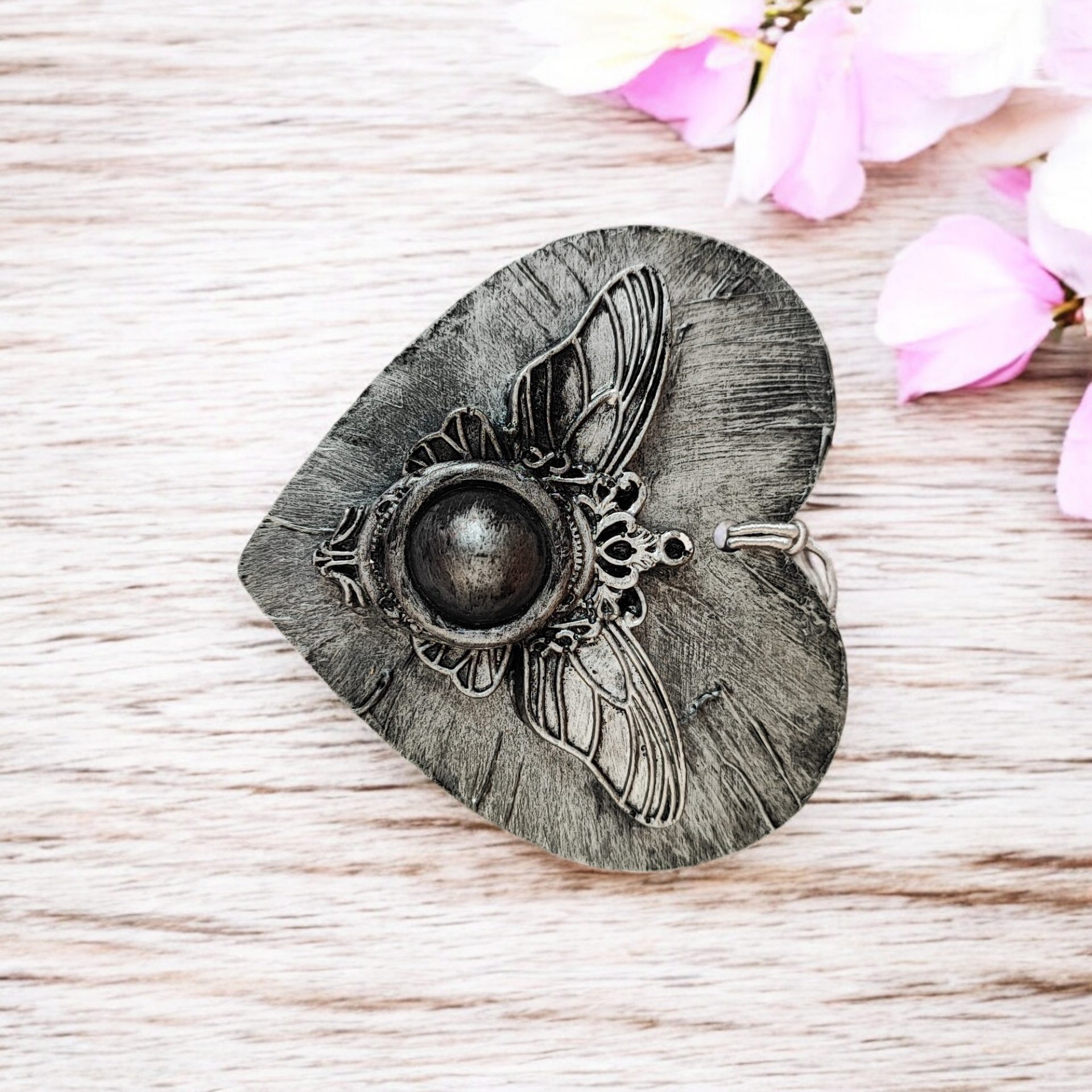 Hand-painted with acrylic and metallic paint, decorated with epoxy resin and air-dry clay embellishments.