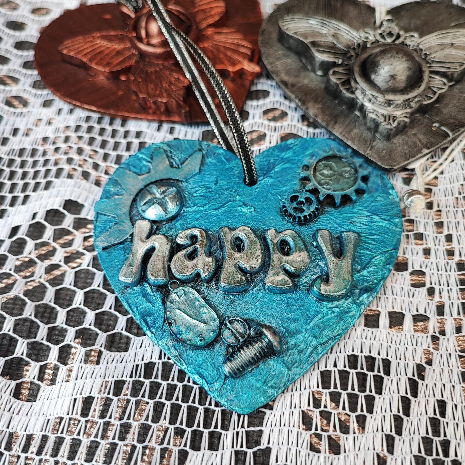 Decorated with air-dry clay embellishments, hand painted with acrylic and metallic paint, and finish with a coat of clear varnish for protection.