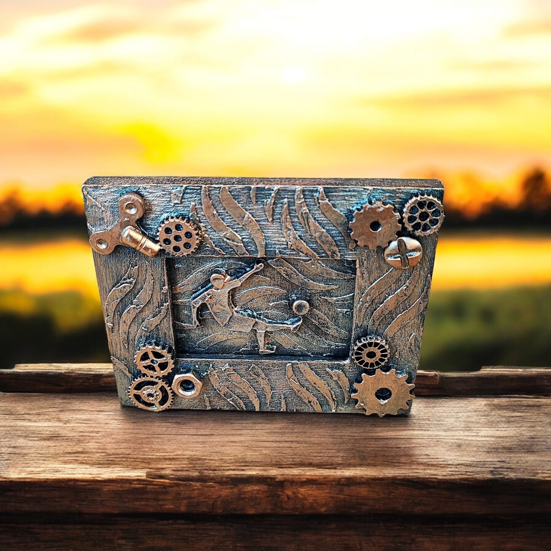 Hand-decorated with resin and air-dry clay embellishments this unique Steampunk-style Football Decoration can be the perfect addition to any decoration, room or a personal touch to a gift.