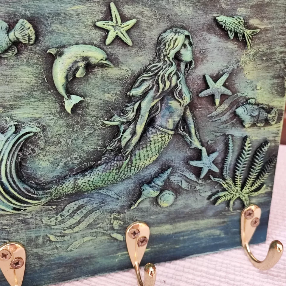 Tea Towels Holder, Mermaid Wall Art, Sea Life Hook, Key Holder
