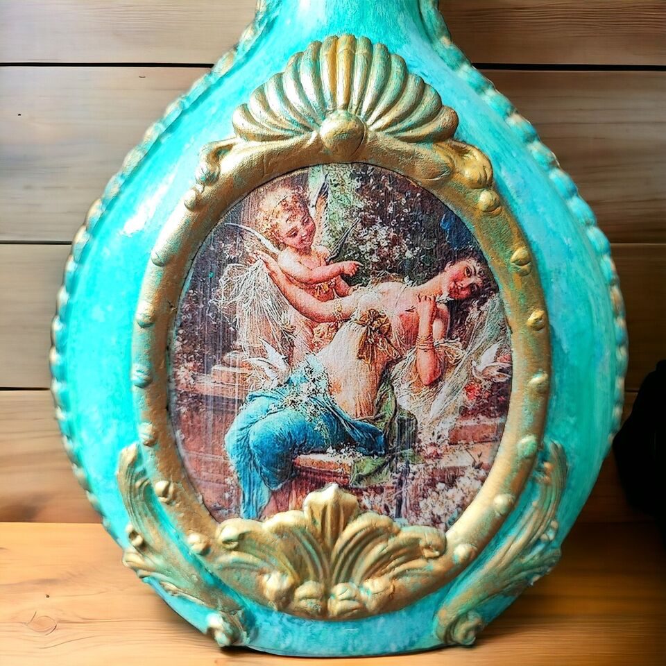 Presenting the Virgin and Angel hand-decorated Unique Vintage Style Glass Bottle