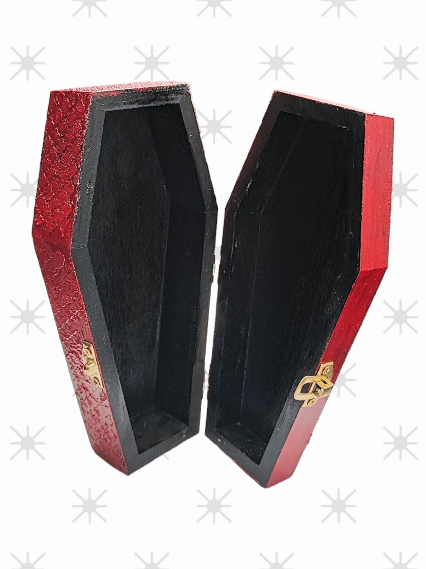 Small Wooden Halloween Coffin Jewellery Box, Rustic Trinket Case for Storage and Gift